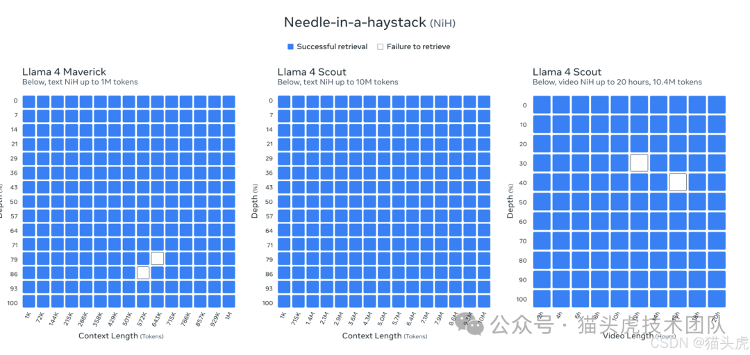 Llama 4 系列提供了一个前所未有的 10M token 上下文窗口,显著增强了模型处理长文本和复杂任务的能力。特别是 Llama 4 Scout,在处理多个文档和长篇文本时,表现得尤为出色。