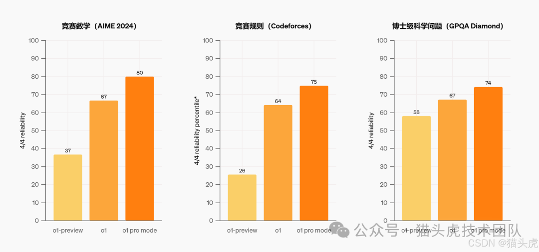 在实际测试中,o1 pro 模式在多项挑战性基准测试中表现优异,例如: