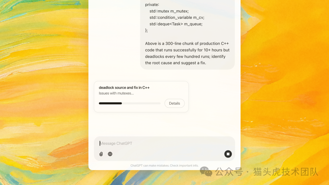 ,并直接提出问题。如果答案需要较长时间生成,ChatGPT 会显示进度条并发送应用内通知。