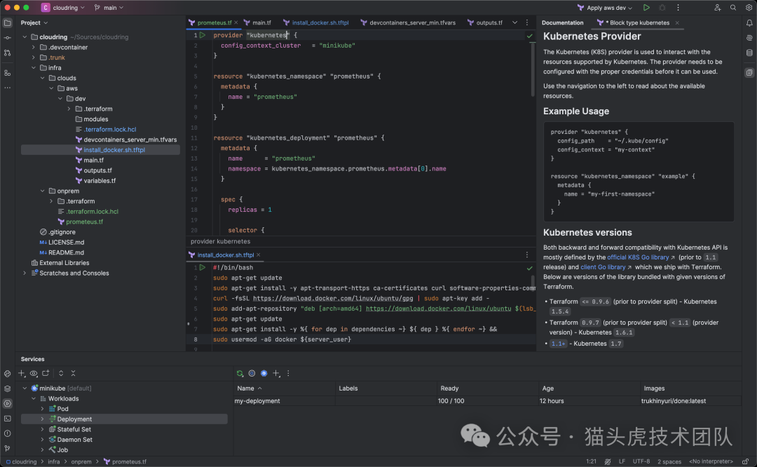 ,帮助用户快速准备和配置项目环境。「扩展的代码补全」:为超过 3,900 个第三方 Terraform 提供商提供了广泛的代码补全功能,极大提升了开发效率和准确性。 「Terraform 模板语言 (tftpl) 支持」:引入了对动态 Terraform 模板的支持,允许模板与您的首选编程语言无缝集成,为自动化和定制提供更多可能。