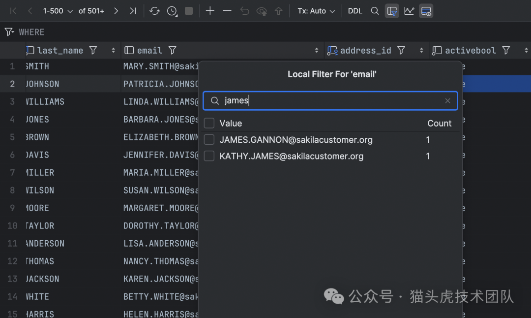 数据编辑器中的本地筛选
