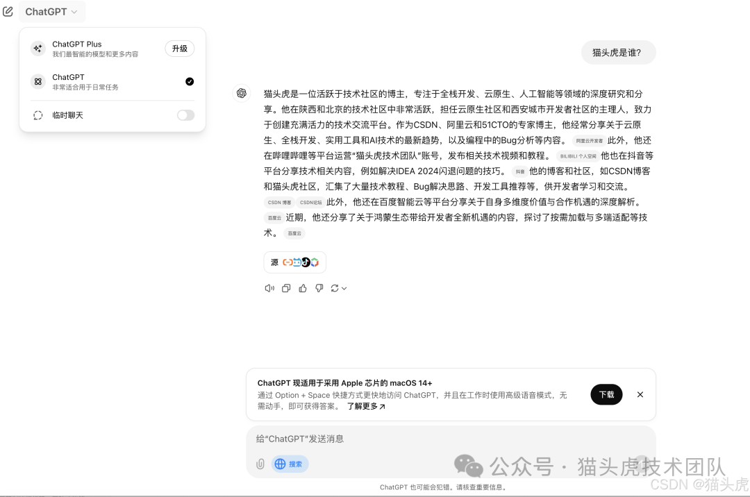 你想知道猫头虎是谁?输入问题,ChatGPT秒级反应,效果如下图!