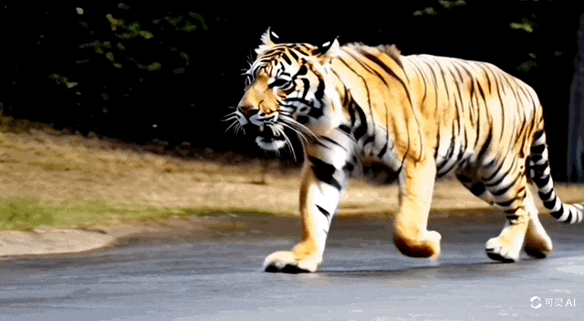 可灵大模型不仅在真实物理世界中表现出色,还能将用户的创意灵感无缝转换为视觉现实。从公路上高速奔跑的老虎,到月球上奔跑的宇航员,每一个细节都展现出无与伦比的真实感。