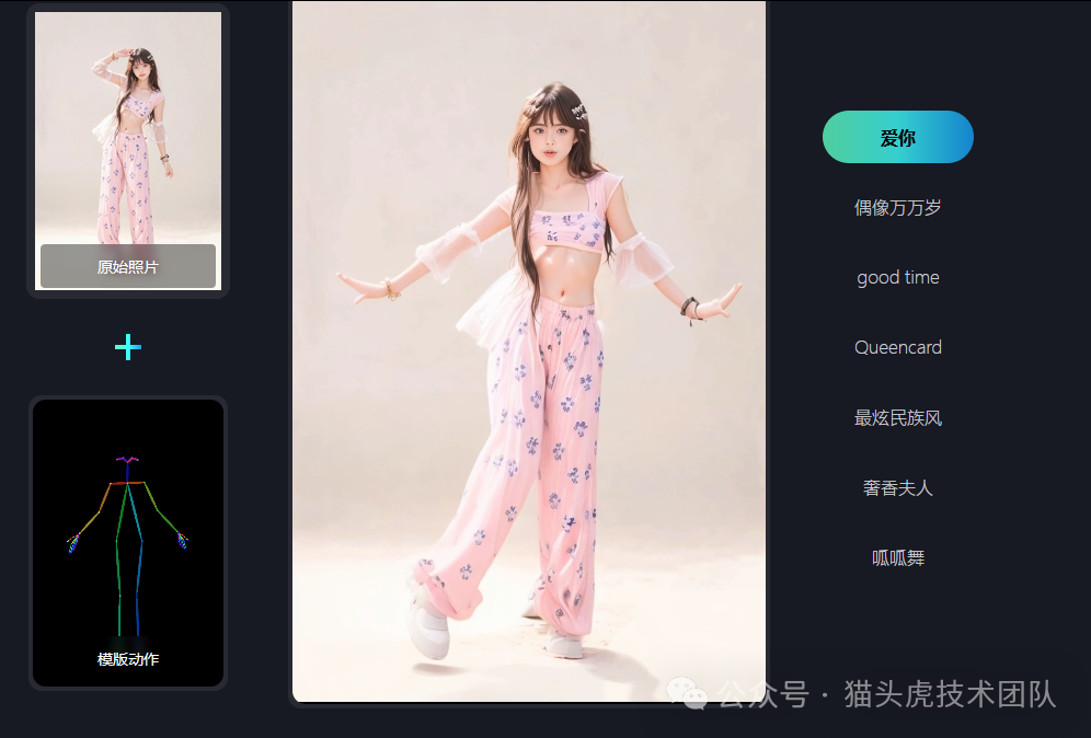AI舞王与AI唱跳:上传全身照,生成跳舞视频,甚至还能边跳边唱。