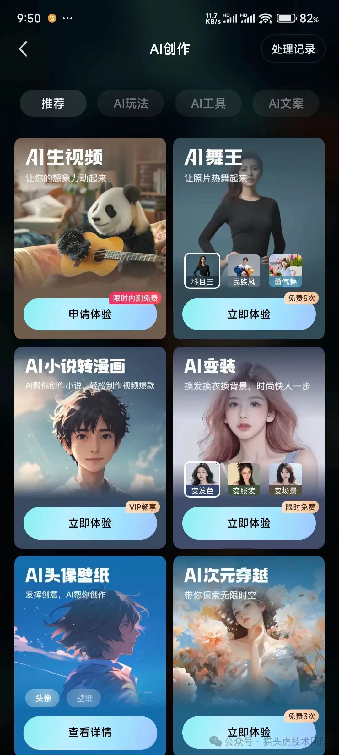 官网右下角下载APP,安装完成之后,首页 先点击 `剪辑` -->再点击 --> `AI创作`,即可看见如下界面,点击第一个 填写资料申请体验即可(测试手机为小米13Ultra),苹果手机是否支持,欢迎评论区留言