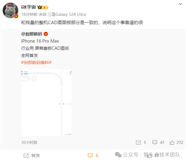 数码博主“刹那数码”爆料,iPhone 16 Pro Max的屏幕边框仅1.15mm,成为全球边框最窄的手机!这样的设计不仅提升了视觉效果,还增强了握持感。另一位博主“i冰宇宙”也确认了这一消息,表示这款手机的CAD图纸与实际测量结果完全一致。