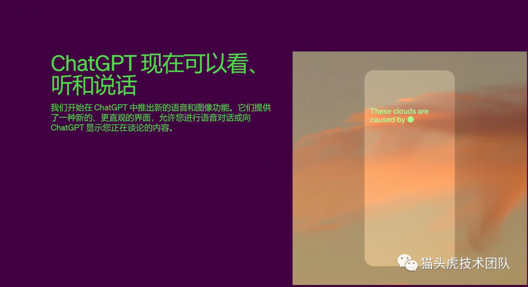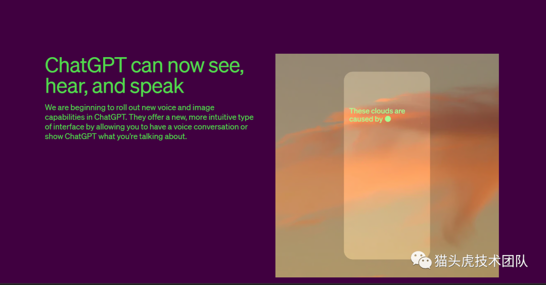 大家好,我是猫头虎博主🐯,今天我要带领大家了解一下,OpenAI的 #ChatGPT 刚刚更新了一些令人兴奋的视听功能!🎉 这些新增功能将使我们能够通过语音和图像与ChatGPT交流,让交互变得更为直观和生动。现在,让我们一起探究一下这些新功能吧!