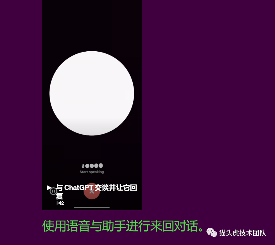 「如何启用语音」: 只需转到移动应用的“设置”→“新功能”,选择加入语音交谈。然后,点击主屏幕右上角的耳机按钮,并从五种不同的声音中选择你喜欢的声音。