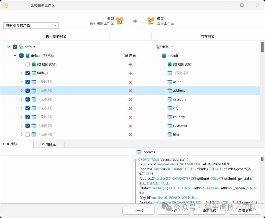 比较模型工作区并将数据库与模型同步,或者反向操作,自动地将其中一方的更改应用到另一方中。Navicat 确保数据库和模型之间的无缝集成,使它们保持最新且一致。