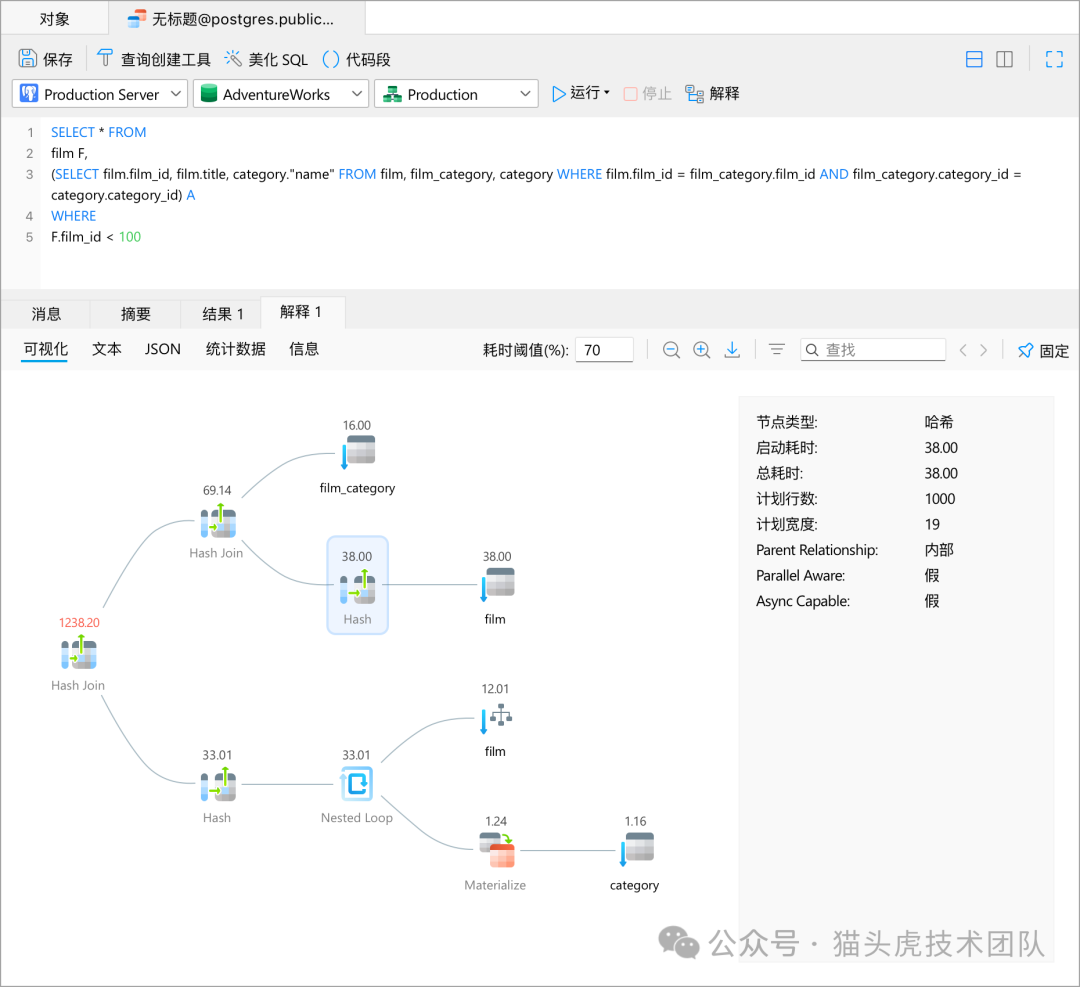 Navicat 已经大大提升了查询解释功能。它支持各种格式,包括可视化、JSON、文本和统计计划的解释查询执行。通过图形化和高亮来表示那些高耗能或低效率的操作,Navicat 使你能够深入了解查询如何与数据库进行交互,这有助于识别需要优化或故障排除的区域,从而提高查询性能和整体数据库效率。