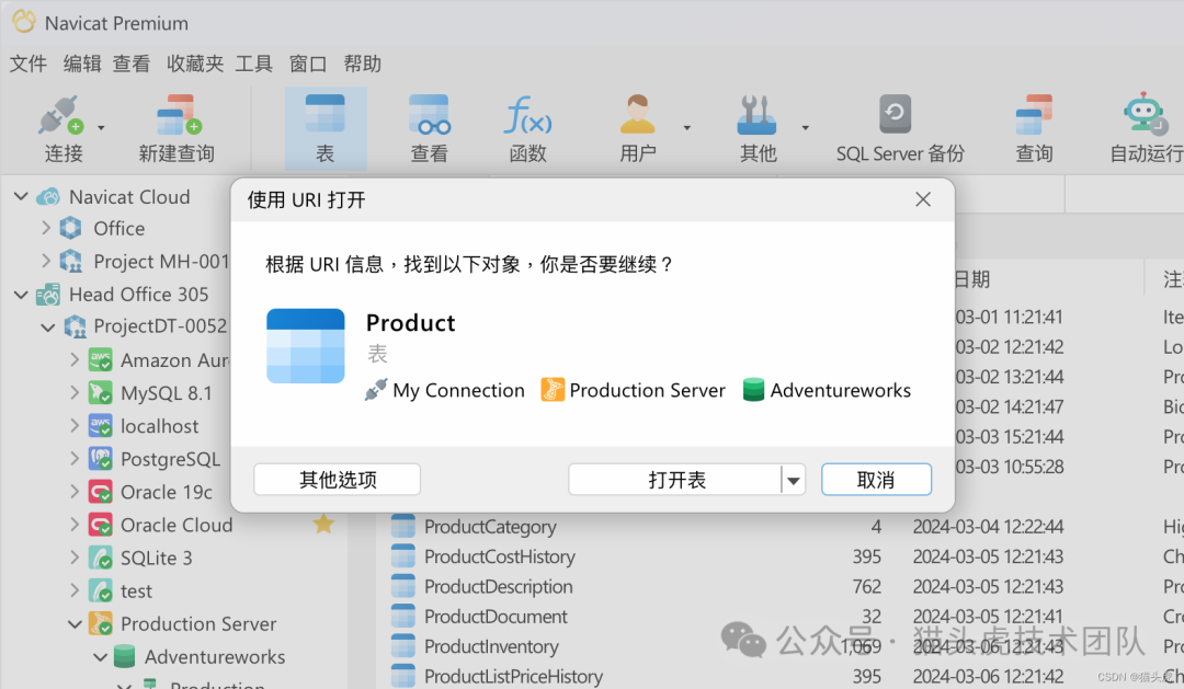 共享服务器对象 URI 可促进团队成员之间的协作。无论团队成员位于何处,Navicat 提供了一个快捷方式,可以轻松访问对象。单击 URI 可在 Navicat 中快速打开对象。这消除了手动导航来定位对象的需要,让每个人都可以专注于他们的任务,而不会出现不必要的复杂性。