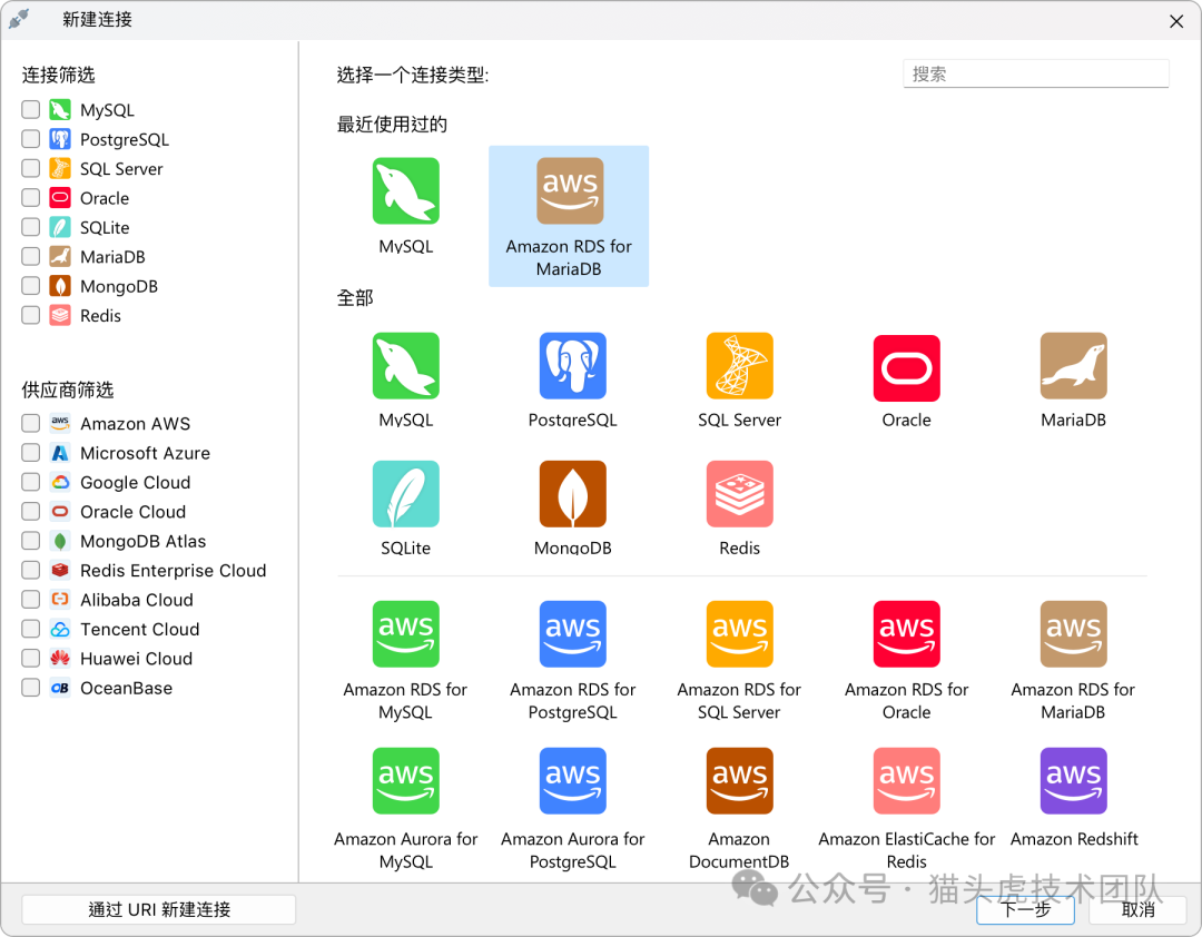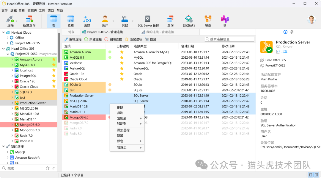 大家好,我是猫头虎。今天我要为大家介绍 Navicat 17 的新特性和亮点。Navicat 是一款专业的数据库管理工具,支持多种数据库类型,包括 MySQL、Oracle、SQL Server、PostgreSQL、MariaDB、Redis、MongoDB 和 SQLite。Navicat 17 包含的版本如下:Navicat Premium 17、Navicat 17 for MySQL、Navicat 17 for Oracle、Navicat 17 for SQL Server、Navicat 17 for PostgreSQL、Navicat 17 for MariaDB、Navicat 17 for Redis、Navicat 17 for MongoDB、Navicat 17 for SQLite、Navicat Data Modeler 4。它提供了直观的用户界面和丰富的功能,帮助用户轻松管理和操作数据库,提高工作效率。