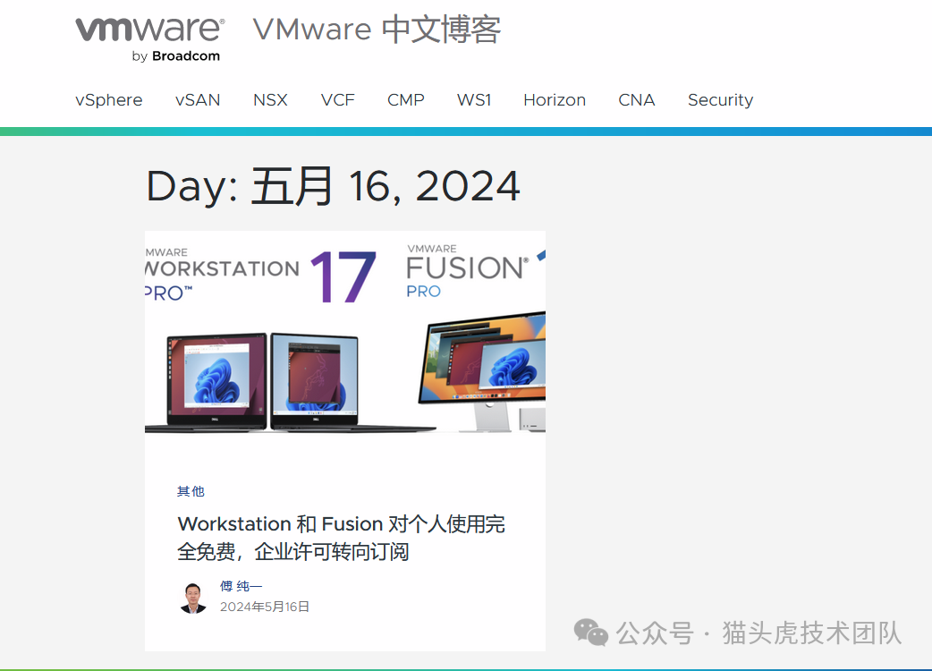 2023年11月,博通收购了 VMware,并对产品及策略做了一些调整。此次针对个人用户免费使用的公告,也是重要的调整之一。除了 Workstation Pro 和 Fusion Pro 之外,其他 VMware 产品如 vSphere 等,仍需付费订阅。