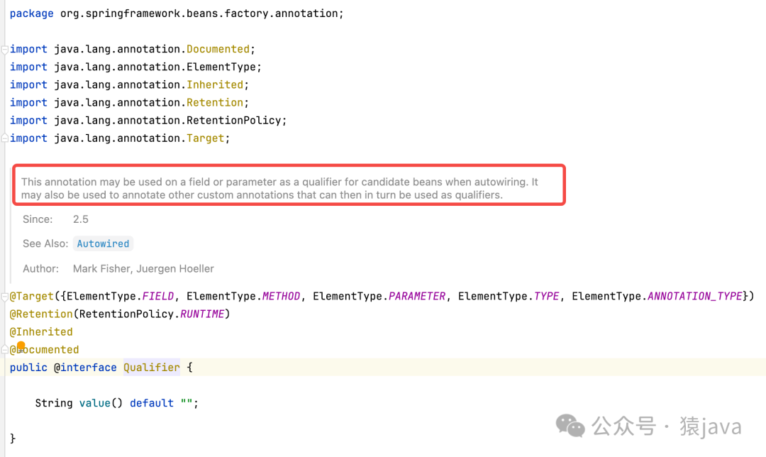 @Qualifier 注解的源码如下图: