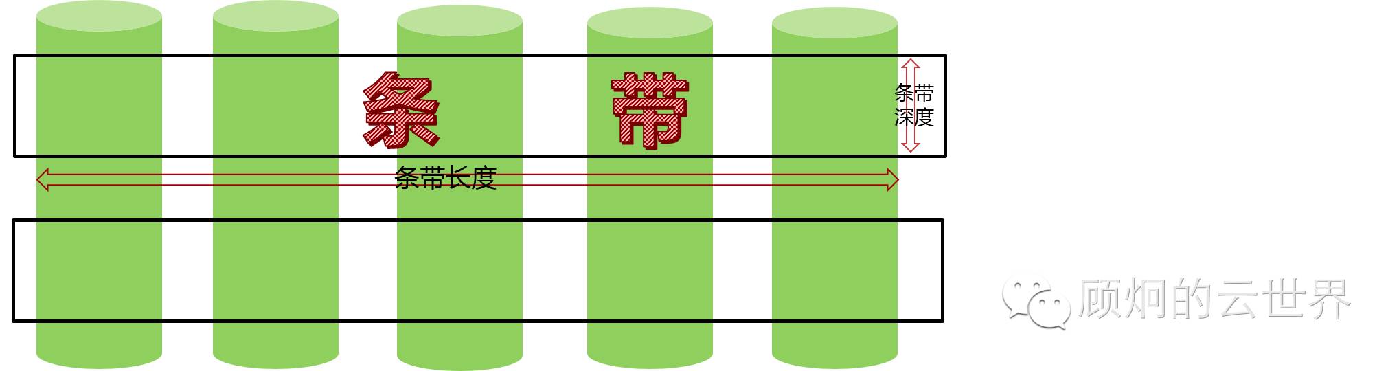 把磁盘们相同偏移量的一块空间横向进行分割,组成一条逻辑上存储空间。数据是先写满一条条带,再写下一条条带。一个卷可以有很多条条带组成。条带的划分应该的磁盘配置初级就完成。条带包含扇区(或块)的个数叫条带长度;每个磁盘内包含属于这个条带的扇区(或块)的个数叫条带深度。为什么要引入条带的概念呢,是因为要解决单个磁盘一次只能同时并发一个IO和保证数据完整性。