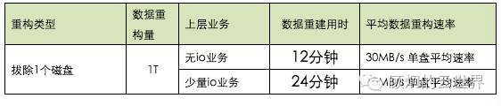 1TB数据重构时间=1000*1000/(2.5*m) m:参与重构磁盘数量