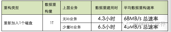 如果1台12块盘的服务器故障,最大重构36T数据,需要最短时间是342分钟,5.7小时。