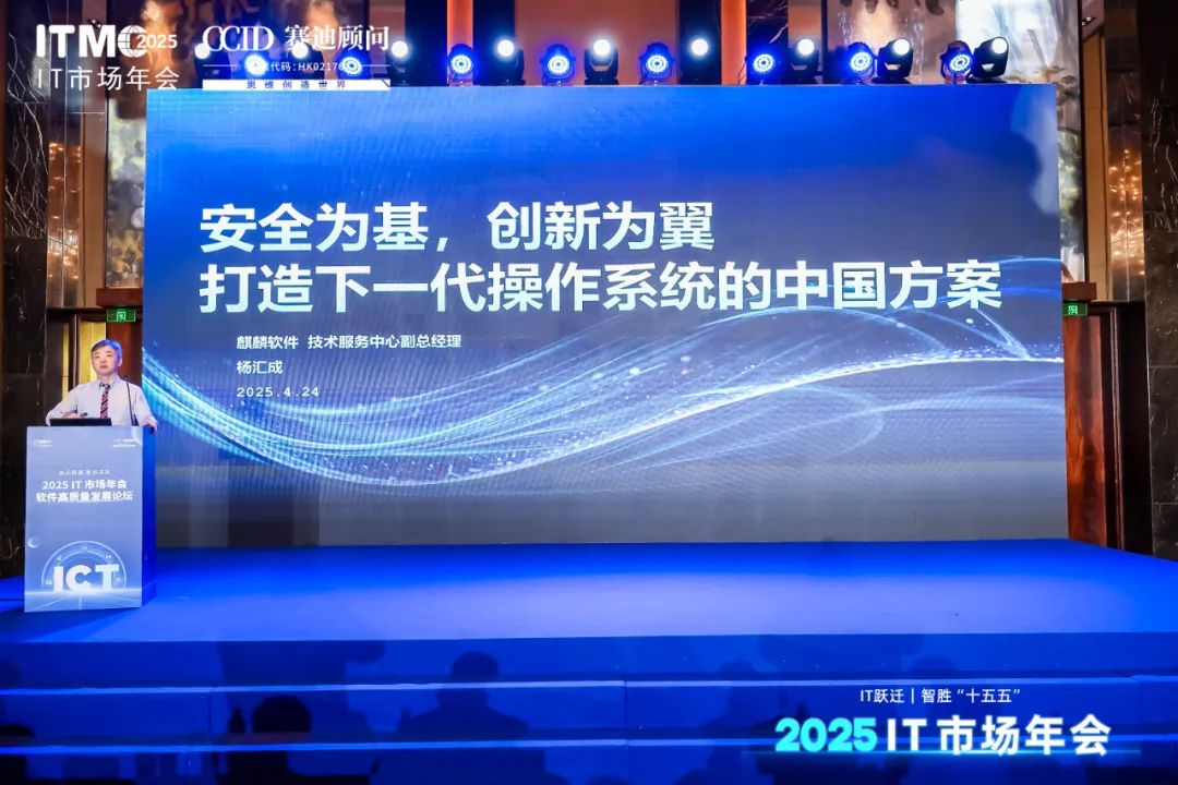 本届年会以“IT跃迁 智胜十五五”为主题,旨在通过探讨信息技术的智能化、跨越式进步,如何驱动ICT产业在“十五五”规划的关键时期实现跃升,为企业提供前瞻性的行业洞察与战略指导。麒麟软件参与“软件高质量发展论坛”,回顾国产操作系统发展历史、洞见未来发展机遇。