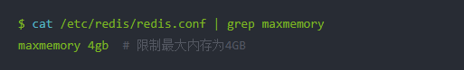 在Redis配置文件中配置了最大内存限制,防止Redis占用过多内存。我们将内存限制为4GB。