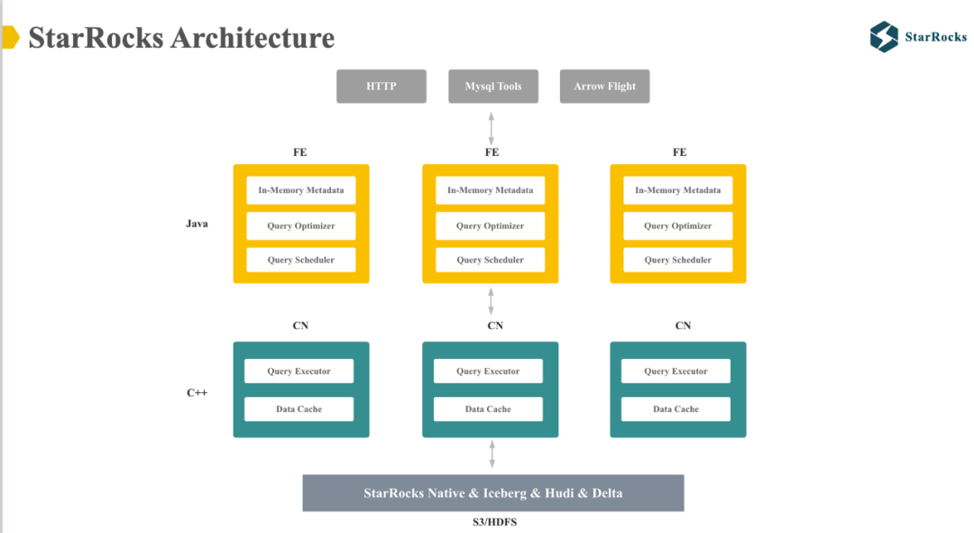 CN:作为查询执行引擎并存储 Lake 数据的 Data Cache ,由 C++ 实现。