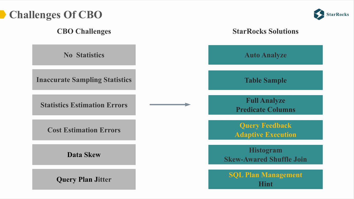过去几年,在 cost estimation 方面,我们面临了诸多挑战,这些挑战是所有 CBO 优化器普遍存在的问题,例如: