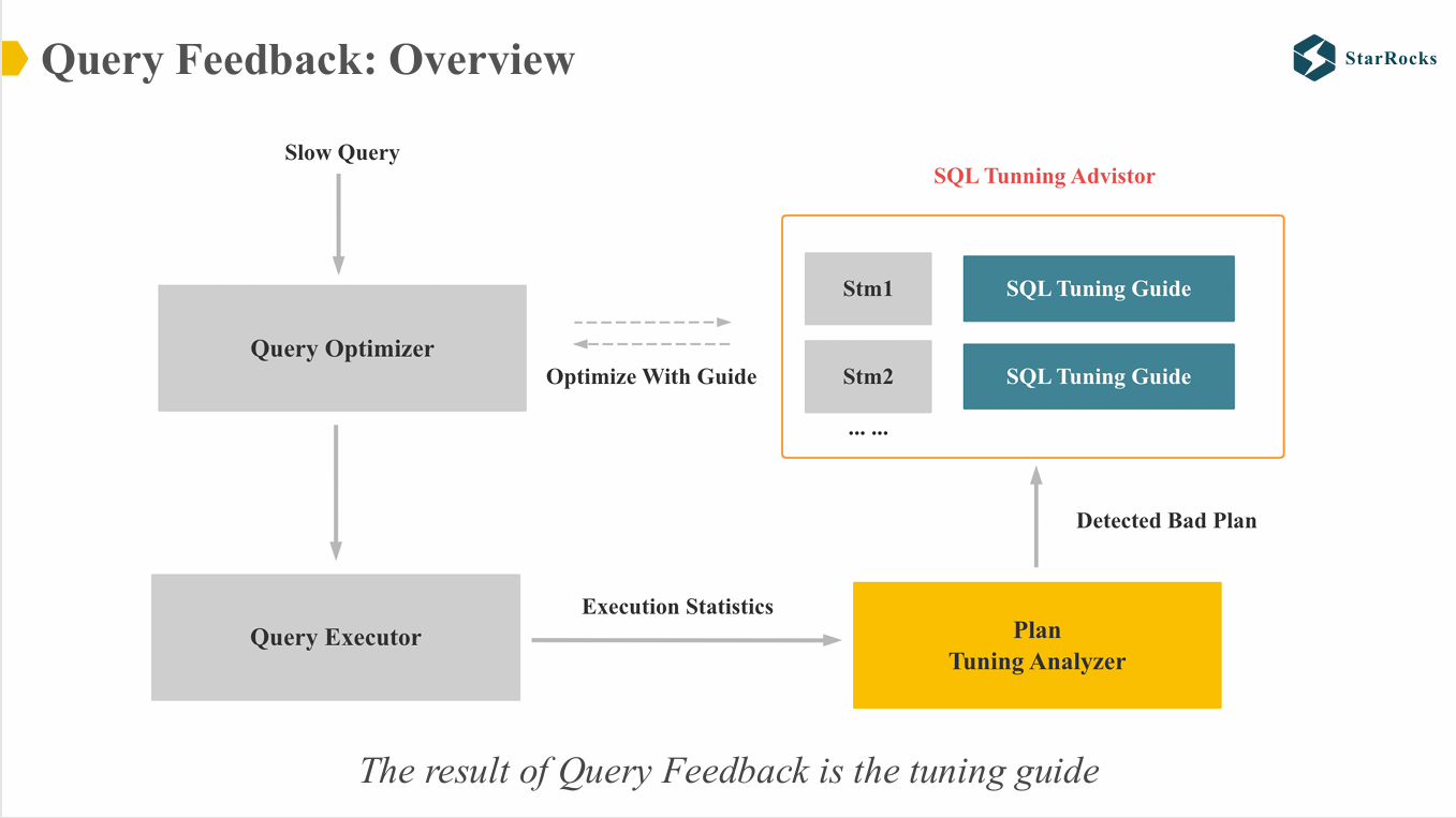 StarRocks 中,Query Feedback 的首个版本并不会直接更新统计信息,而是记录了每类查询对应的 tuning guide。