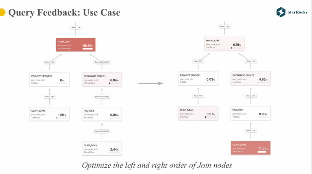上图是一个 Query Feedback 的应用示例,用于修正 Join 左右表顺序不当的问题。