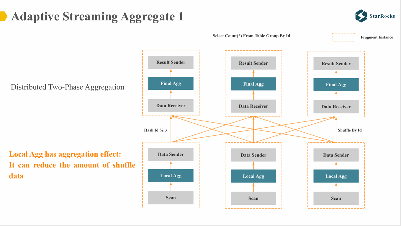 StarRocks 的优化器倾向于生成分布式二阶段聚合计划,然后根据实际执行过程中获得的聚合效果动态调整。