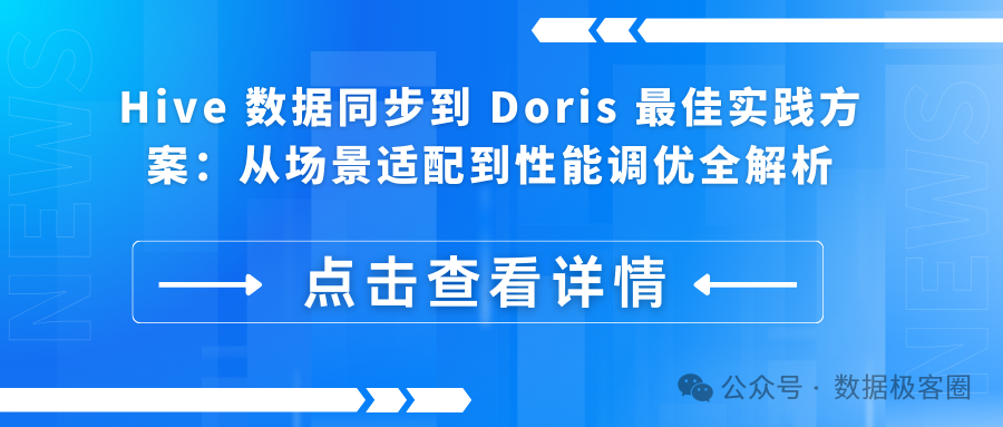 Hive 与 Doris 的结合可充分释放离线存储与实时分析的协同价值。通过合理选择同步方案(优先 Broker Load/Spark Load)、优化数据模型(聚合模型降存储,分桶策略防倾斜)及利用联邦查询能力(Doris On Hive),企业可构建高效、灵活的数据中台架构。实际落地时,建议先通过小规模数据测试(如 SSB 数据集)验证方案可行性,再逐步扩展至生产环境,同时关注 Doris 社区更新(如谓词下推优化),持续提升查询性能。