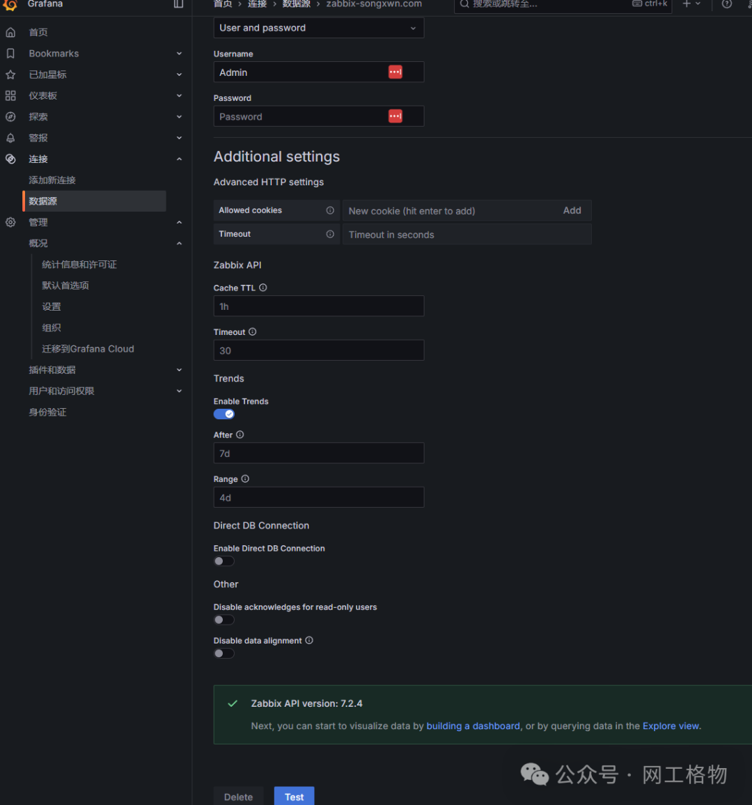 • 基于Zabbix 官方的Alma Linux 8 作为基础镜像。 • 镜像源都改为国内大学镜像站,自动联网安装Zabbix+Grafana。 • 安装中文字体、Zabbix和Grafana也配置默认中文。 • Zabbix 也指定中文字体,绘图无乱码。 • 配置时区为东八区,Zabbix配置Web时区也为东八区。 • Grafana自动安装zabbix源插件,并自动添加开箱可用的zabbix源。 • 默认关闭SElinux和防火墙。