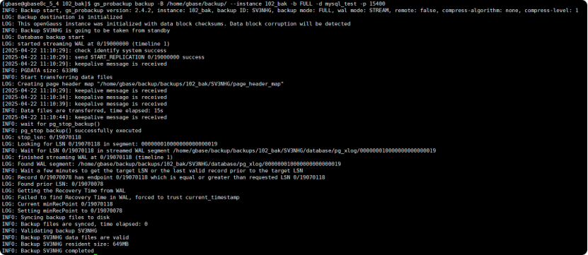 gs_basebackup -D /home/gbase/physical/back/ -p 15432参数: