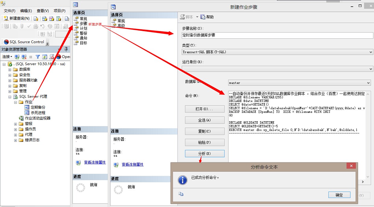 1.执行的顺序,现在master数据库创建存储过程,然后创建作业