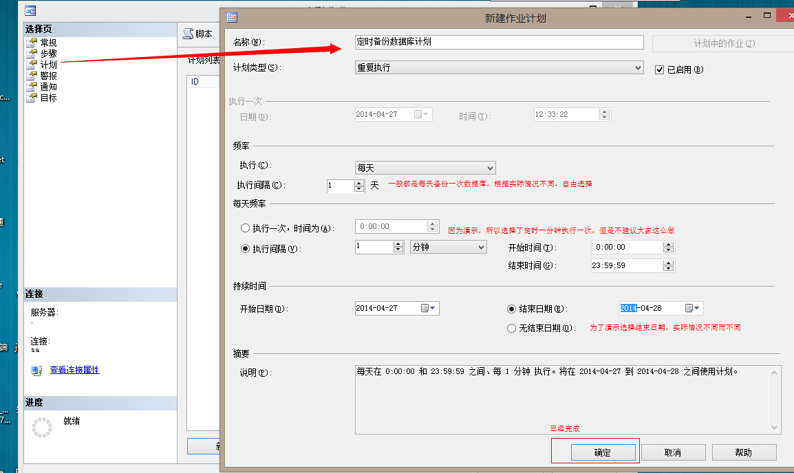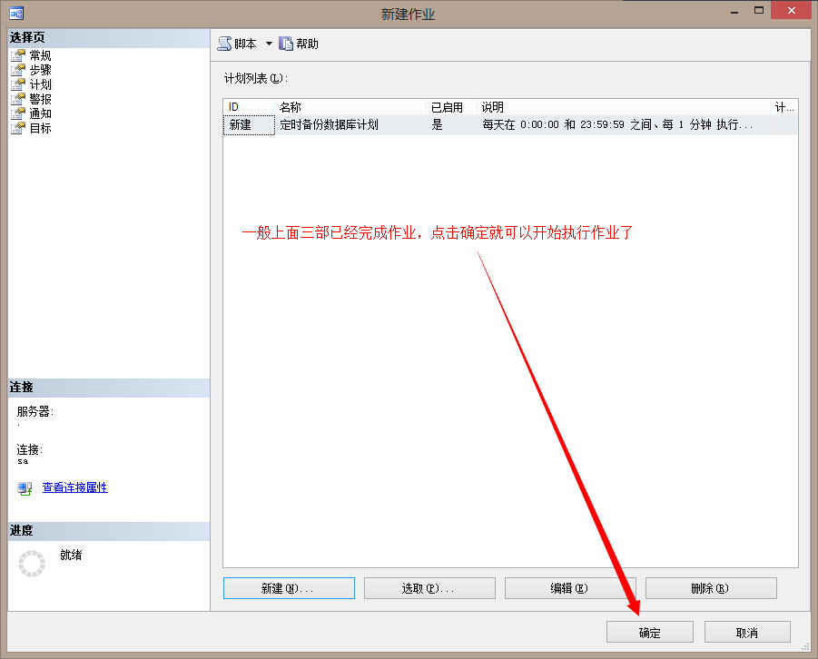 创建一个新的作业,将刚刚的调用存储过程的SQL语句放入到新建作业=>步骤选项=>命令,中就可以了。最后一步执行计划自己根据实际情况进行设置