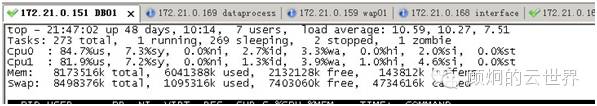 说明:cpu占用率user 81%,sys 11.5% ,idle 2.3% ,io等待4.3% ,服务器CPU已达最高处理能力.loadaverage 10.6 表示2核cpu平均每分钟内有8个任务排队。