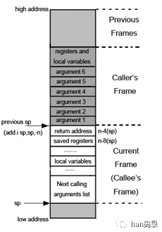 (1)调整SP,调整前指向caller栈顶,调整后执行当前栈顶
