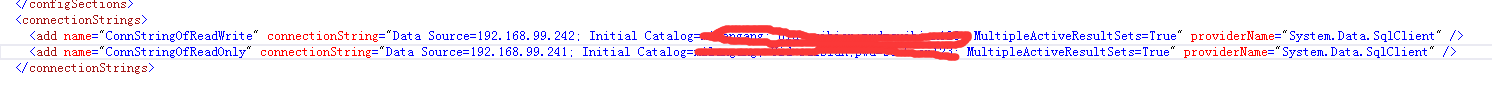 <WritableDB>Data Source=192.168.99.242; Initial Catalog=DBTest; Uid=sa;pwd=test123; MultipleActiveResultSets=True</WritableDB>