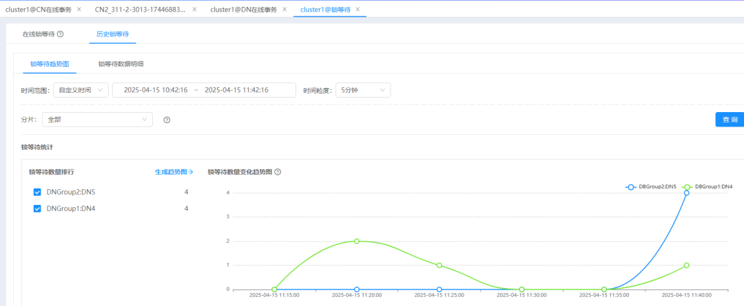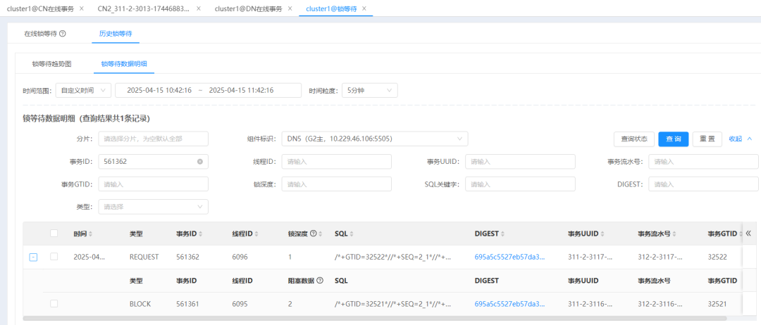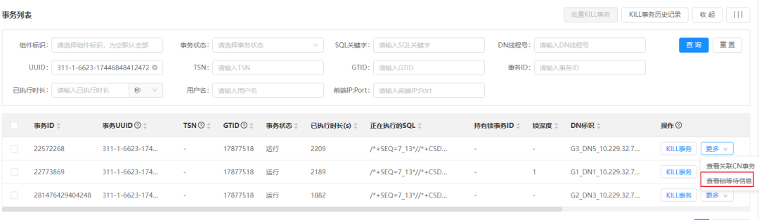 图5 DN事务列表,查看锁等待信息联动入口