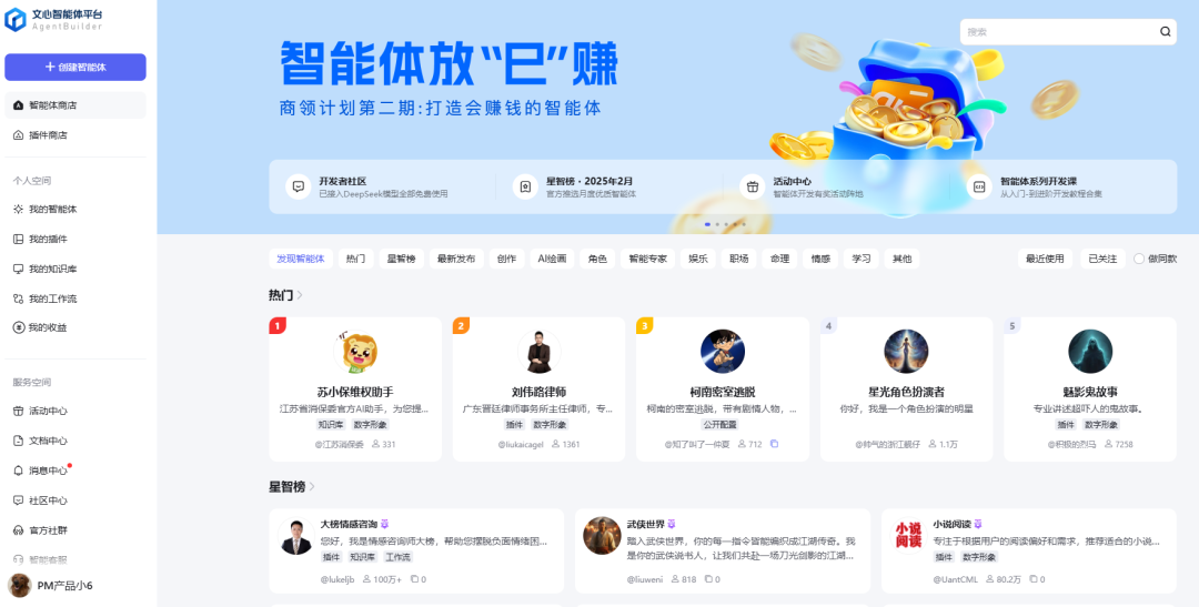 语聚AI,这个是我用的第一个智能体平台,无代码的,全程不懂开发,也能搭建。