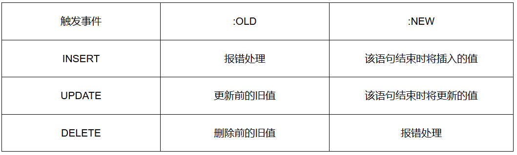 OLD表示记录被处理前的值;NEW 表示记录被处理后的值。