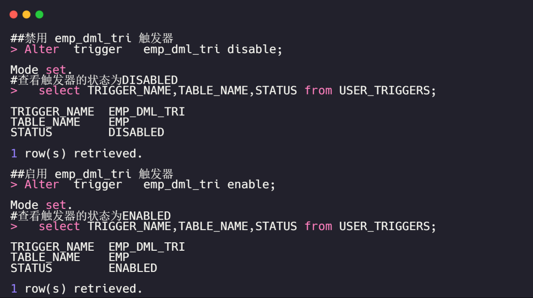 触发模式:设置触发器为启用(ENABLE)或禁用(DISABLE);