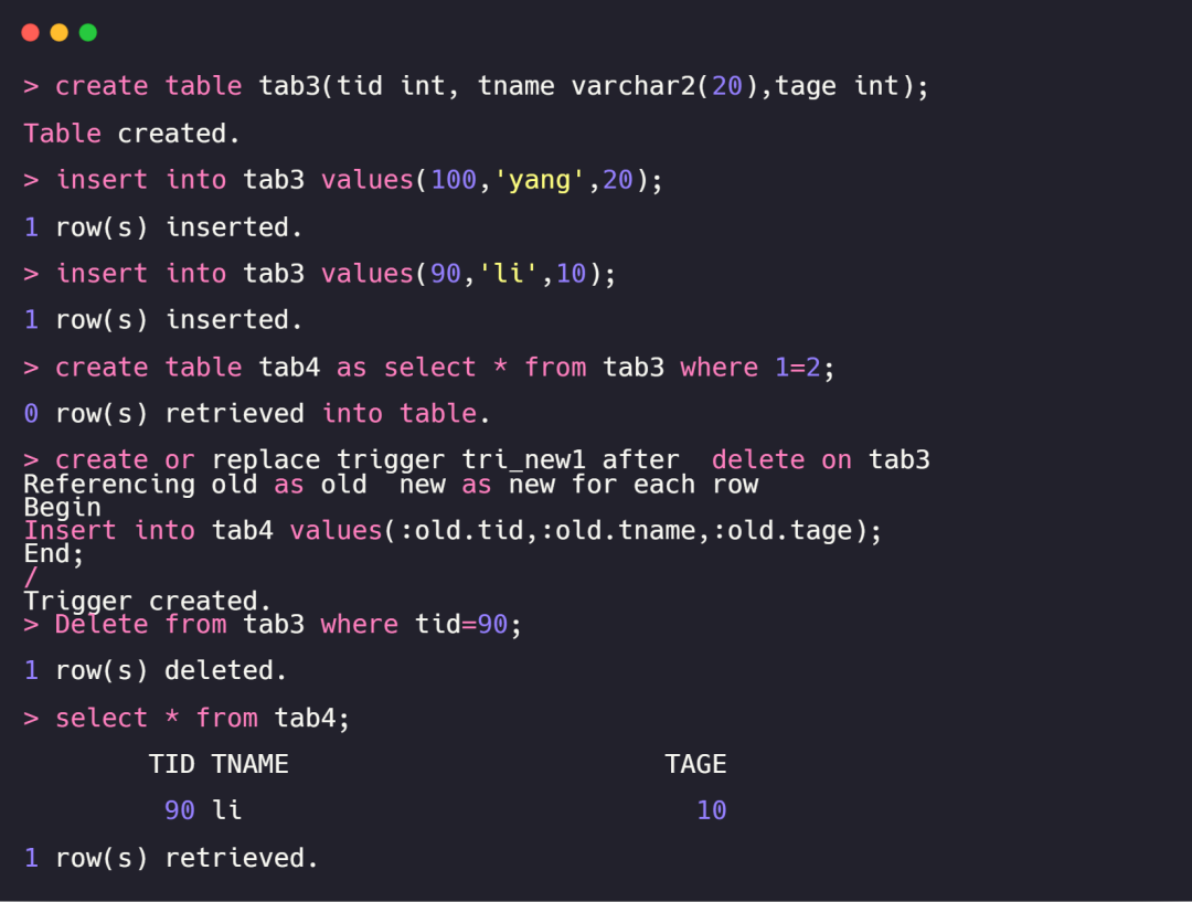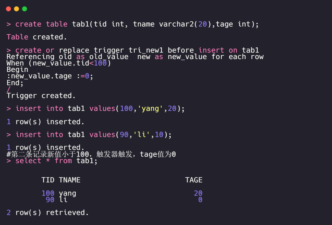 当前版本已实现的 PLSQL 语法在触发体部分均支持。