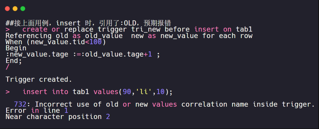 仅在行级触发器,可以使用新、旧行值的引用访问正在处理的行中的数据;