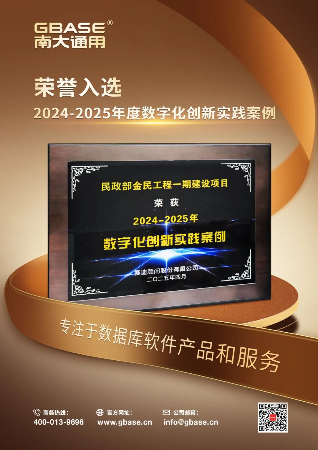 会上,赛迪顾问重磅揭晓数字化创新实践案例评选结果。GBase数据库凭借在民政部金民工程中的创新应用,荣誉入选“2024-2025年度数字化创新实践案例”。