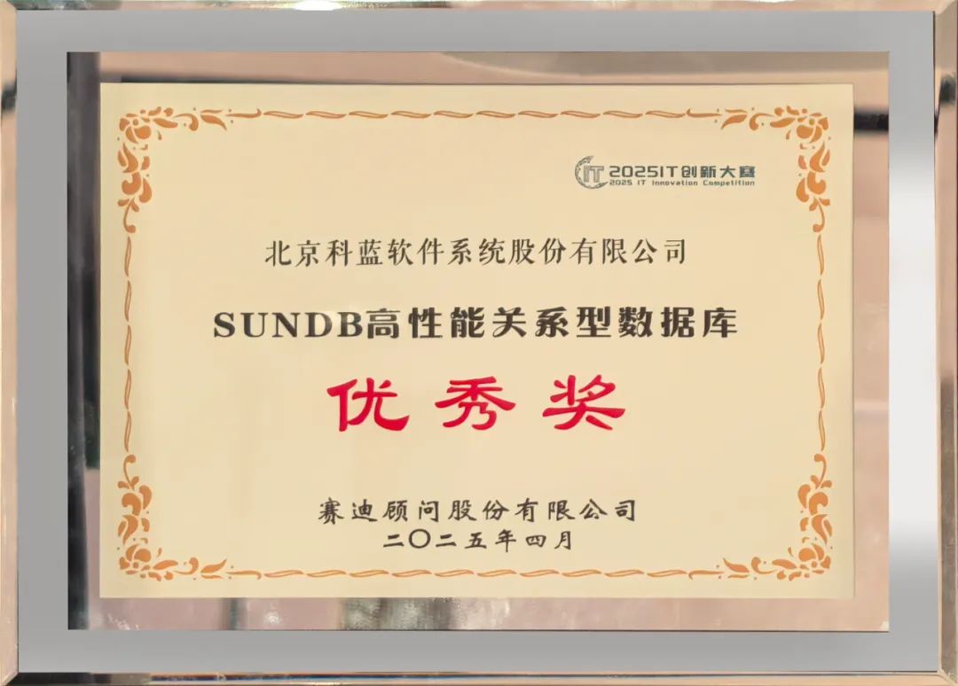 在全球数字化加速发展的大背景下,IT 技术已成为推动各行业转型的关键力量。2025 年 4 月 8 日,赛迪顾问第二届 IT 创新大赛决赛在北京圆满落幕。北京科蓝软件系统股份有限公司凭借 SUNDB 高性能关系型数据库项目在众多参赛团队中脱颖而出,荣获赛迪顾问 2025 IT 创新大赛优秀奖。该奖项于 2025 年 4 月 24 日 “2025 IT 市场年会” 上正式颁发,既体现了对科蓝软件技术创新实力的高度认可,也彰显了其在推动 IT 产业发展方面所做出的重要贡献。