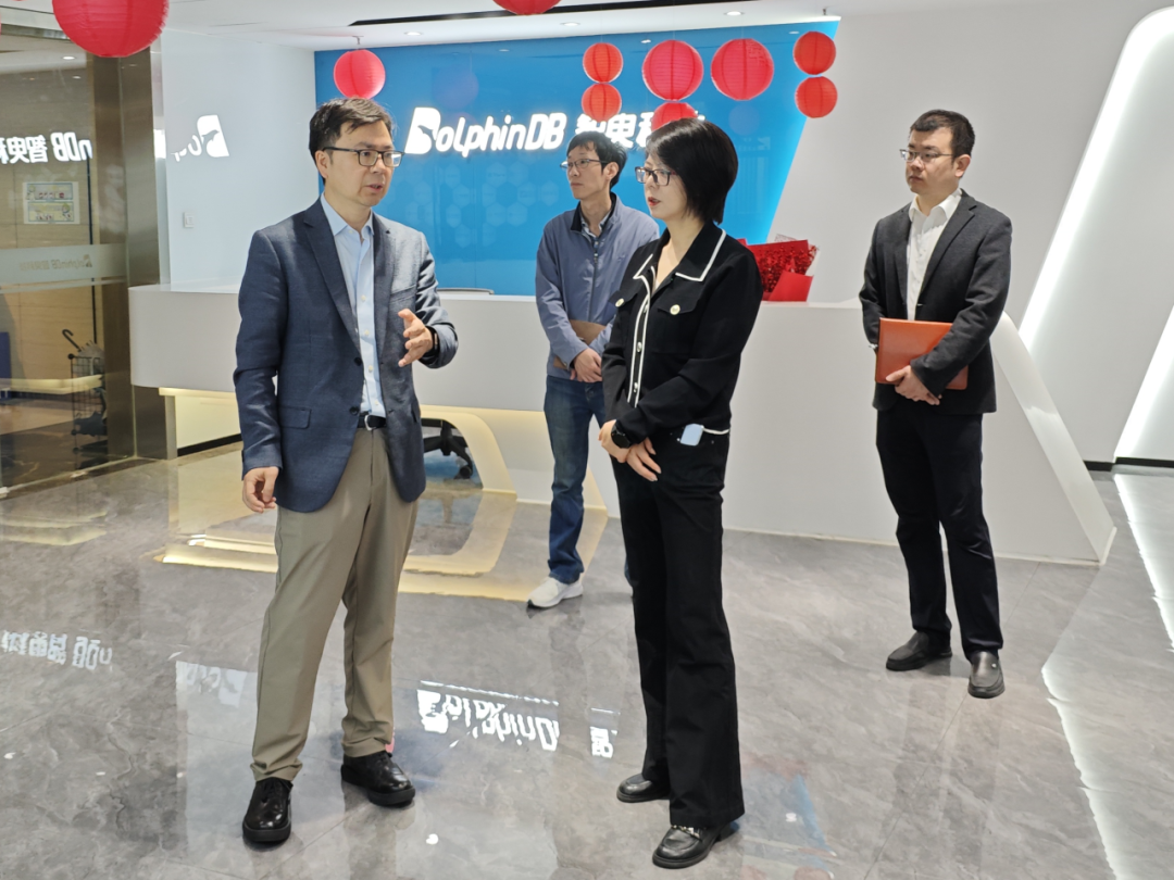 4月27日上午,萧山区数据资源管理局党组书记、局长庄月红一行莅临 DolphinDB 开展调研走访活动。调研过程中,庄月红一行听取了 DolphinDB 创始人兼 CEO 周小华博士关于公司情况的介绍,了解了 DolphinDB 的发展历程、产品优势、客户群体、商业模式以及未来发展方向。