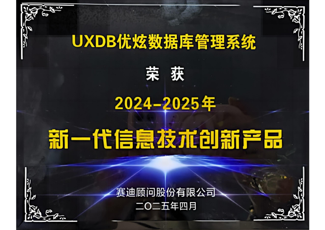 UXDB优炫数据库管理系统荣获2024-2025年新一代信息技术创新产品奖