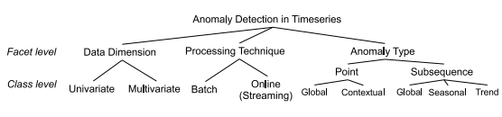 异常检测方法可以从不同角度进行分类。本文提出的分析框架包括以下三个维度:数据维度、处理方式和异常类型,在每个维度下进一步划分为多个子类别。