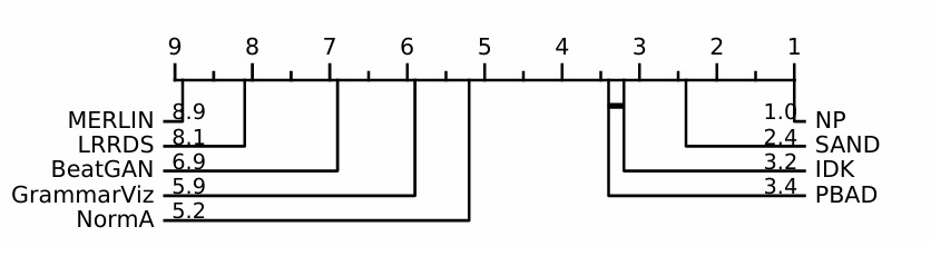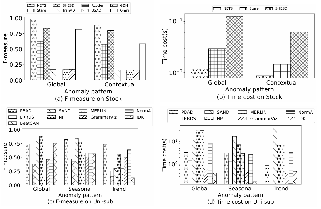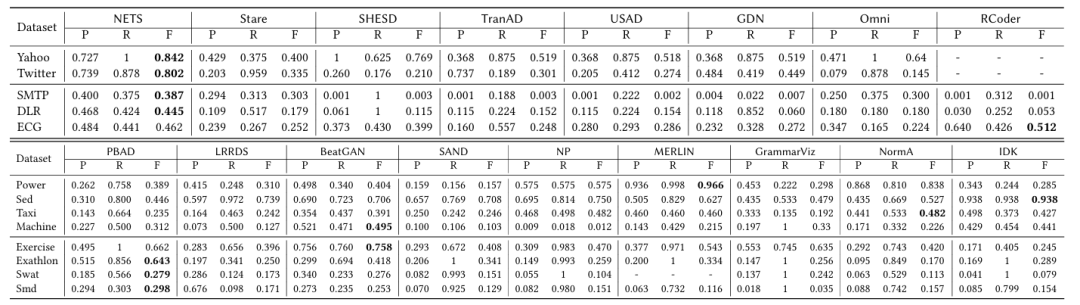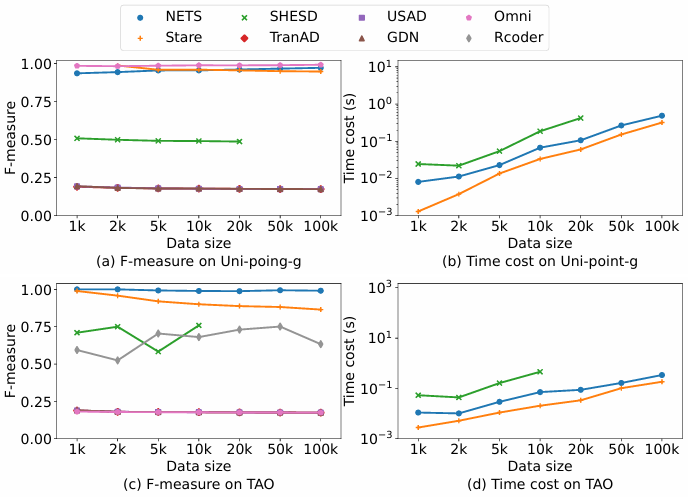 总的来说,NETS、STARE、NormA等方法效率优,同时小数据规模不利于基于模式学习的算法。