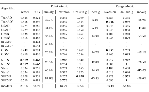 (2)使用点异常检测算法,配合Point-Adjust后处理,再按点指标评估(表格中算法后带*);