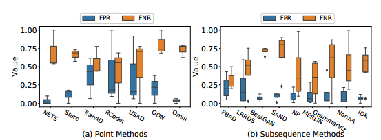 指标与方法不匹配问题:许多研究在子序列异常数据集上采用点评估指标,并通过“point-adjust”策略来修改预测结果,但是实验中应该同时考虑效率和性能之间的权衡来分析这些措施的效果。